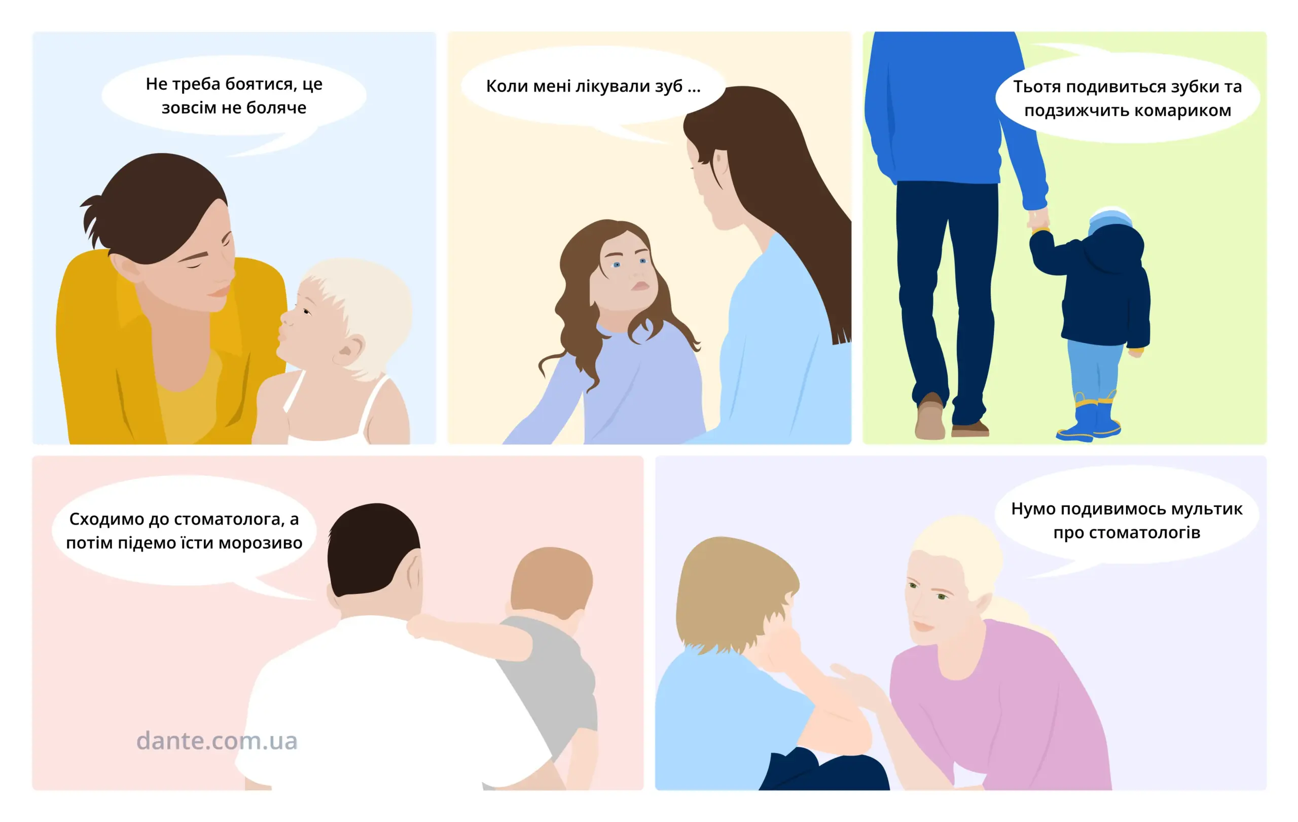 Головне у підготовці дитини до першого візиту до стоматолога — це ваш спокій та правильна поведінка. Не варто лякати дитину, підкуповувати її або надмірно деталізувати майбутні процедури.