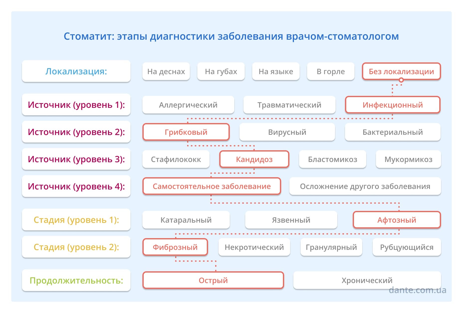 Еще одна классификация стоматитов зависит от стадии заболевания: